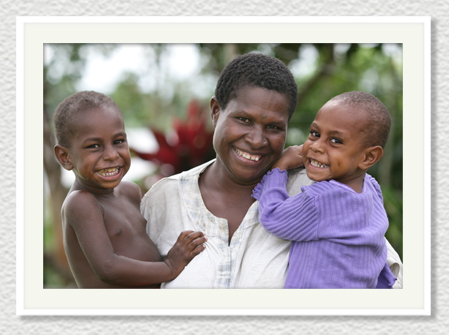 左に我が子、右には近所の子ども、分け隔てない愛情が素晴らしい。