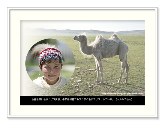 山岳地帯に住むカザフ民族、季節は初夏でもラクダの毛がフサフサしている。