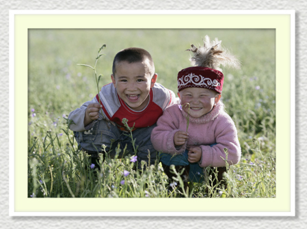 モンゴル 国境近くに住むカザフ人(遊牧民)の兄妹